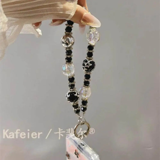 Elegant Black Bow iPhone Case with Beaded Chain – Stylish & Protective